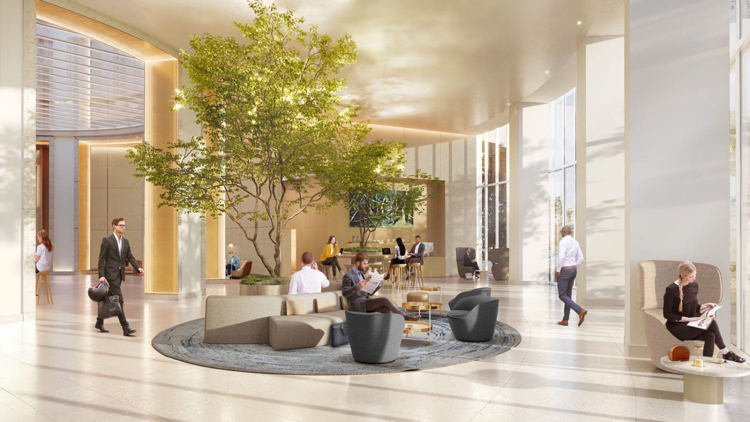 Espaces de travail informel ou de détente, coin pause-café, conciergerie... la convivialité en pleine lumière.